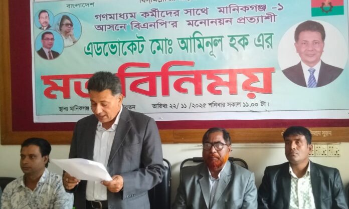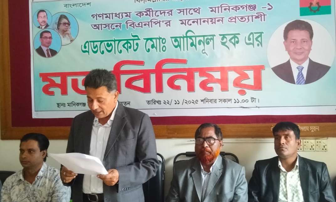 মানিকগঞ্জ-১ আসনে বিএনপির মনোনয়ন প্রত্যাশী অ্যাডভোকেট মো. আমিনুল হক গণমাধ্যম কর্মীদের সঙ্গে মতবিনিময় করেছেন।