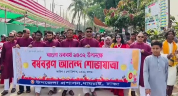 বছর ঘুরে আবার এলো পহেলা বৈশাখ। পুরানো গ্লানী, হতাশা ও মলিনতাকে পেছনে ফেলে নতুন উদ্যমে এগিয়ে যাওয়ার প্রত্যয়ে বাংলার নববর্ষের নতুন বছরকে বরণ করে নিতে ধামরাইয়ে পহেলা বৈশাখ ১৪৩২ বর্ণাঢ্য আয়োজনে পালিত হয়েছে। এই উপলক্ষে সকালে জাতীয় পতাকা উত্তোলনের মাধ্যমে অনুষ্ঠানের সুচনা হয়।